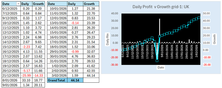 Below is Stalk 1, UK and Australian racing, since 6th Dec, 2025 to 30th Jan, 2026.