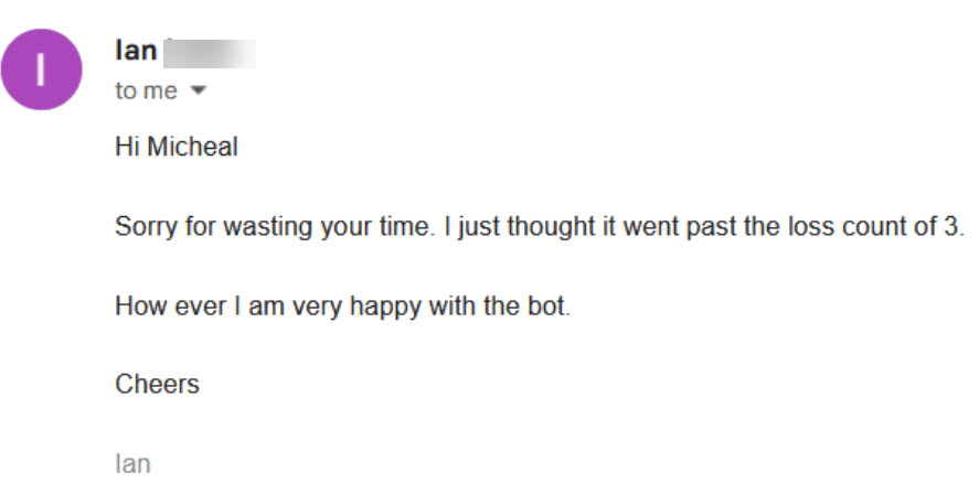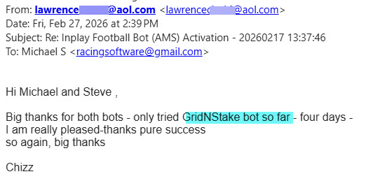 And Michael, did not check it and found that it had stopped but to a race not clearing so we had 11 days not a bet was placed, just shows you need to check bots and vps.